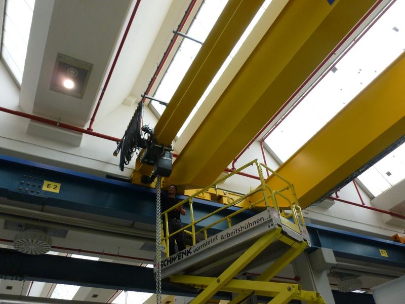 Als zusätzliche Maßnahme wurde ein weiterer Einträgerlaufkran mit einer Traglast von 5,0 t in ein anderes Hallenschiff umgesetzt, um die Produktionskapazitäten in einem weiteren Bereich des Werks zu optimieren. Diese Umsetzung erforderte eine präzise Planung und Durchführung, da der Kraneinsatz nahtlos in den bestehenden Produktionsprozess integriert werden musste.